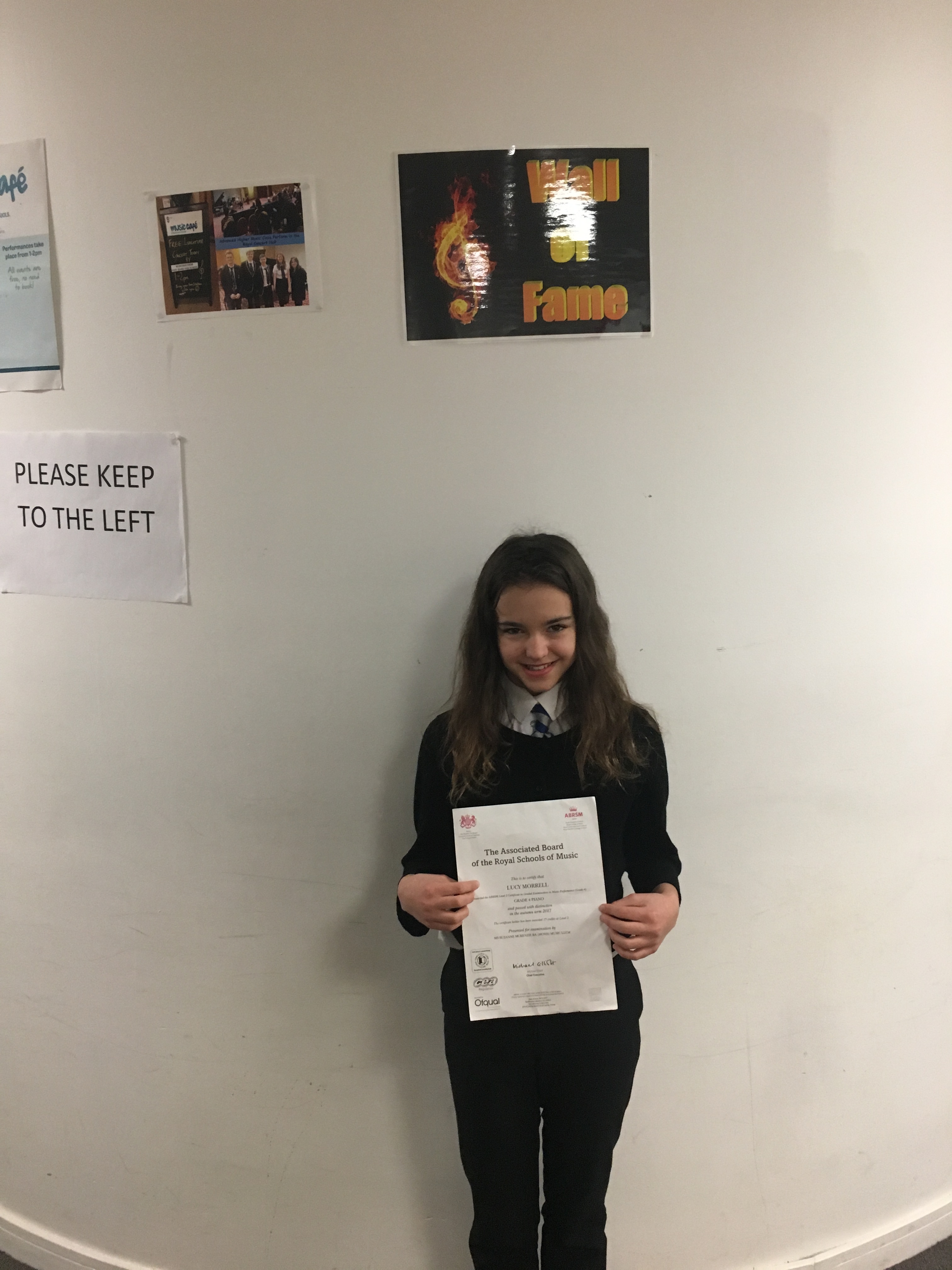 Music Success Posted on 11 Dec 2017by Site Admin Congratulations to Lucy Morrell in S1 who gained distinction (the highest possible award) for her Grade 4 piano. Grade 4 is the standard required for Higher Music and we are very proud of Lucy for her fantastic achievement in S1! Related